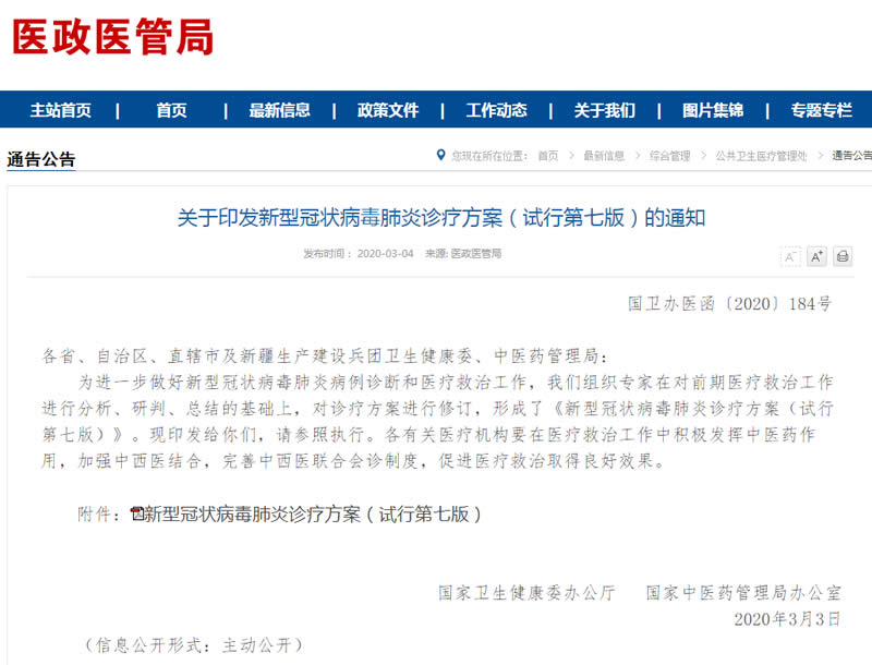 為進一步做好新型G狀病毒肺炎病例診斷和醫(yī)療救治工作,我們組織專家在對前期醫(yī)療救治工作進行分析、研判、總結(jié)的基礎(chǔ)上,對診療方案進行修訂,形成了《新型G狀病毒肺炎診療方案(試行第七版)》,F(xiàn)印發(fā)給你們,請參照執(zhí)行。各有關(guān)醫(yī)療機構(gòu)要在醫(yī)療救治工作中積J發(fā)揮中醫(yī)藥作用,加強中西醫(yī)結(jié)合,完善中西醫(yī)聯(lián)合會診制度,促進醫(yī)療救治取得良好效果。