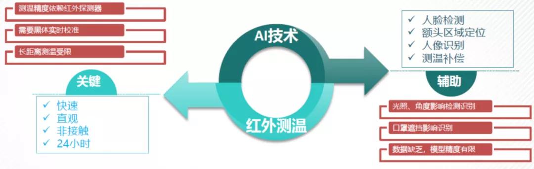 AI體溫檢測的關(guān)鍵在于紅外體溫。測溫精度不足,僅可對人員進行初篩;受環(huán)境因素影響較大,遠距離測溫無法解決;測溫精度修正成為AI未來的突破重點;相關(guān)技術(shù)和產(chǎn)品亟需制定標準規(guī)范。AI技術(shù)在復雜環(huán)境下的遠距離紅外測溫方向上仍需深耕。
