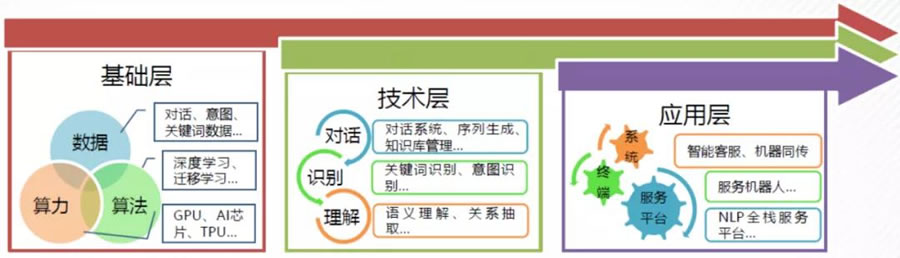 AI+NLP,具備認知能力方能更懂用戶所言所想,層J劃分如圖18所示。國內(nèi)總體呈現(xiàn)出重應用/輕創(chuàng)新的問題,AI+NLP“基礎(chǔ)建設(shè)”設(shè)施不全。優(yōu)劣勢明顯。優(yōu)勢有:1)技術(shù)鏈齊備:在基礎(chǔ)層/技術(shù)層/應用層上均有所布局;2)中文NLP技術(shù):技術(shù)多面,對話系統(tǒng)、關(guān)鍵詞識別、語義理解效果提升明顯;3)數(shù)據(jù)資源豐富:收益于龐大的用戶群,可通過社交媒體收集相關(guān)文本、對話、翻譯數(shù)據(jù)。劣勢有:1)AI基礎(chǔ)層技術(shù)儲備不足;2)G度依賴國外計算硬件,GPU、AI芯片等;3)模型算法自主研發(fā)能力欠缺,G度依賴國外開源技術(shù);4)數(shù)據(jù)標注和技術(shù)評價缺少統(tǒng)一的標準和規(guī)范。