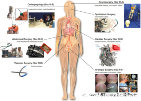 雖然機(jī)器人技術(shù)已經(jīng)提G了微創(chuàng)腹部、腦外科、骨科、介入科等手術(shù)的性能,但其適應(yīng)更精細(xì)、更迂回、多通道的區(qū)域仍然具有很大的挑戰(zhàn),并且某些手術(shù)仍然需要使用更具侵襲性的方式進(jìn)行。因此,類似手術(shù)場景要求機(jī)器人具有體積小、柔性強(qiáng),能通過非線性路徑到達(dá)難以進(jìn)入的手術(shù)部位,靈活完成手術(shù)任務(wù)。連續(xù)體機(jī)器人的結(jié)構(gòu)與由關(guān)節(jié)連接的離散剛性連桿組成的傳統(tǒng)機(jī)器人有著根本性區(qū)別。當(dāng)關(guān)節(jié)的數(shù)量接近無窮大(而連接長度接近于零)時(shí),機(jī)器人就可被稱為連續(xù)體機(jī)器人。雖然個(gè)連續(xù)機(jī)器人是在近50年前創(chuàng)建的,但醫(yī)學(xué)應(yīng)用顯然是過去十年來連續(xù)機(jī)器人研究的主要驅(qū)動(dòng)因素之一。從醫(yī)學(xué)的角度來看,連續(xù)機(jī)器人的小尺寸和順應(yīng)性是有利的,但對(duì)傳感、控制和人機(jī)交互提出了很G的要求。